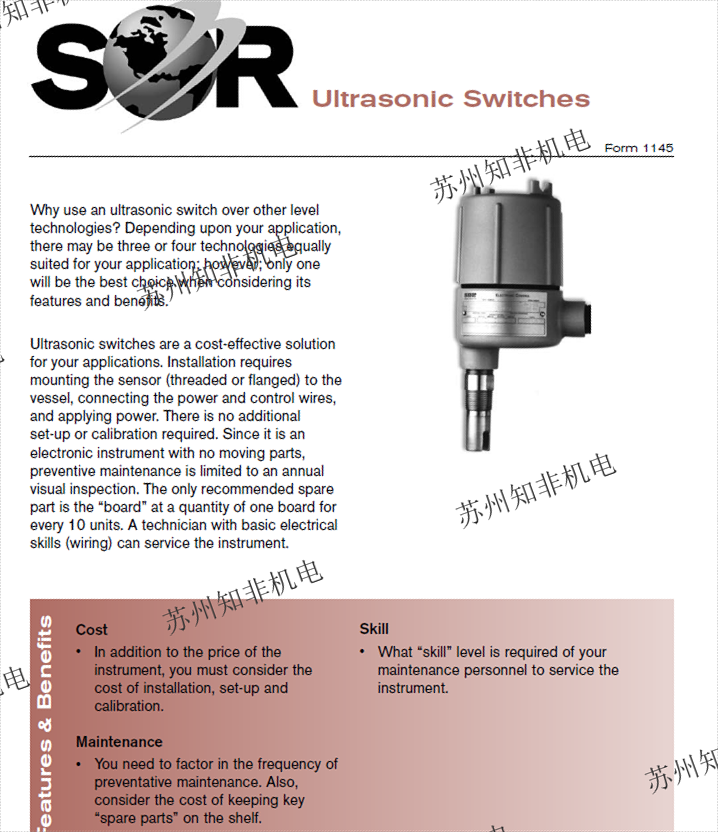 美國(guó)索爾SOR液位開(kāi)關(guān):