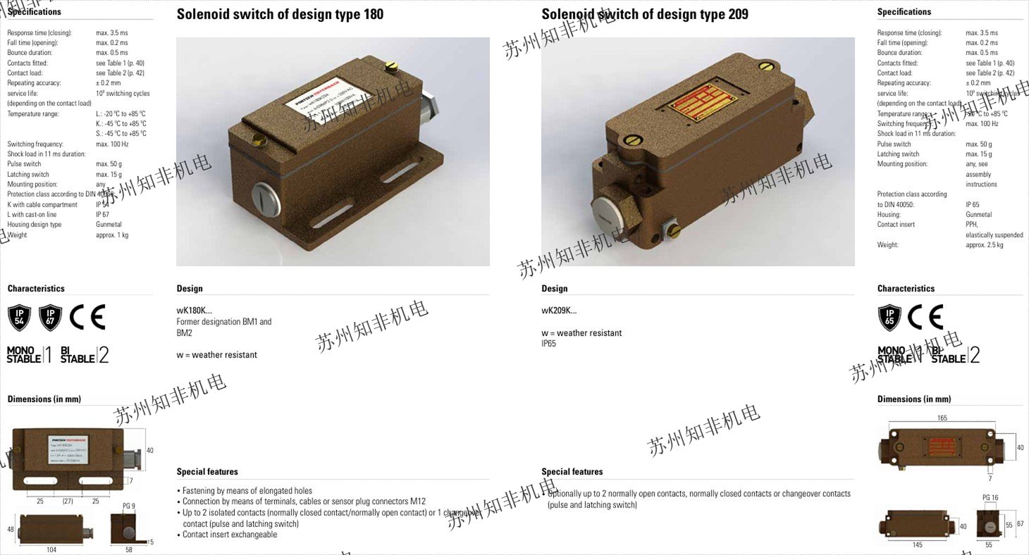 德國(guó)PINTSCH TIEFENBACH公司主要供應(yīng):液壓開(kāi)關(guān)、接近開(kāi)關(guān)、電磁閥、磁性傳感器等產(chǎn)品,該公司重視創(chuàng)新、安全和效率??梢愿鶕?jù)客戶特殊的要求定制產(chǎn)品。