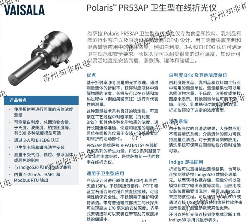 維薩拉 Polaris? PR53AP 長探頭衛(wèi)生型在線折光儀