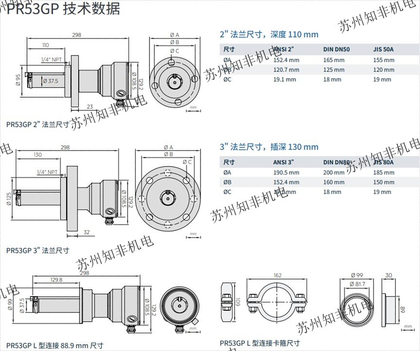 PR53GP 具有多種卡箍和法蘭過程連接以及多種流通池連接方案,也可提供特殊合金材質(zhì)的產(chǎn)品用于嚴(yán)苛工況。